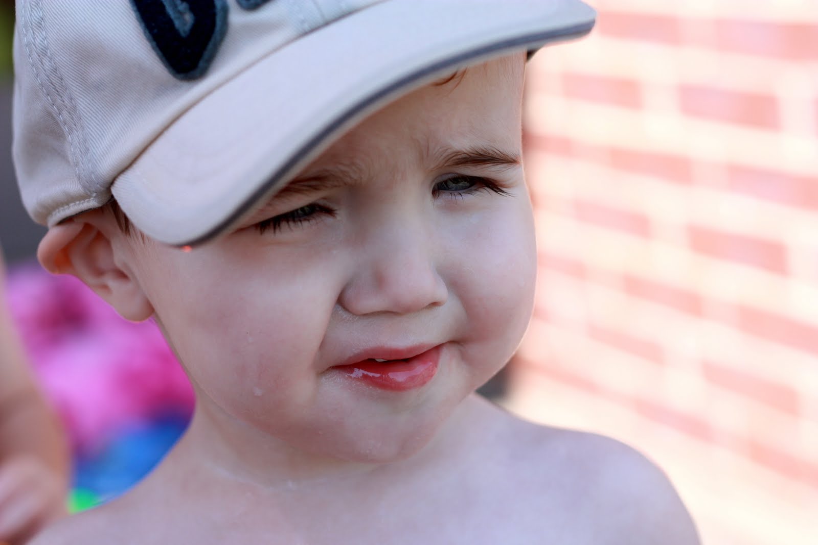 Things went as I would expect them to for the most part. Max outside, in the thick of it all, loving the sprinklers and the loudest part of the party. Lucas inside, far away from the chaos and staying dry, thank you very much.